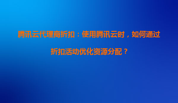 腾讯云代理商折扣:通过优惠活动实现资源分配优化
