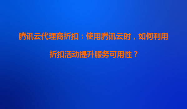 腾讯云代理商折扣:如何利用折扣活动提升服务可用性