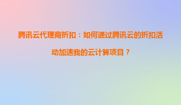 腾讯云代理商折扣:如何通过腾讯云的折扣活动加速我的云计算项目?