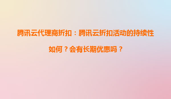 腾讯云代理商折扣:腾讯云折扣活动的持续性如何?会有长期优惠吗?