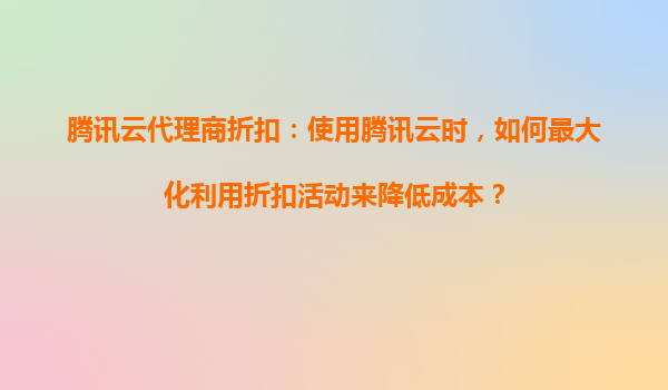 腾讯云代理商折扣:使用腾讯云时,如何最大化利用折扣活动来降低成本?