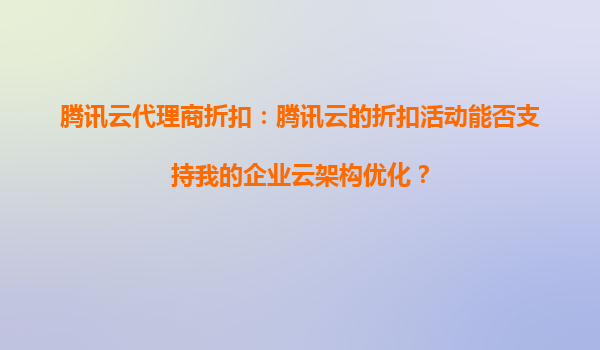 腾讯云代理商折扣:腾讯云的折扣活动能否支持我的企业云架构优化?