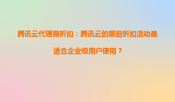 腾讯云代理商折扣:企业级用户的智慧之选