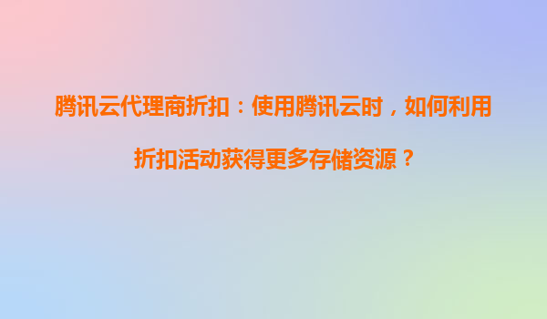 腾讯云代理商折扣:使用腾讯云时,如何利用折扣活动获得更多存储资源?