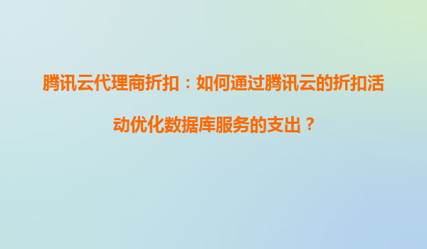 腾讯云代理商折扣:如何通过腾讯云的折扣活动优化数据库服务的支出?