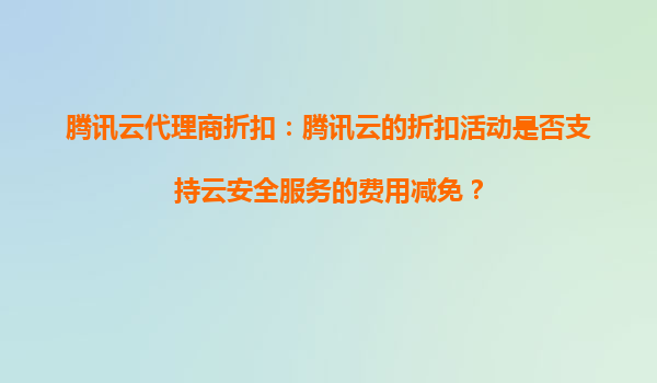 腾讯云代理商折扣政策解析:云安全服务是否享受优惠?