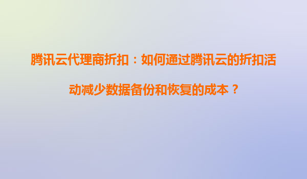 腾讯云代理商折扣:如何通过腾讯云的折扣活动减少数据备份和恢复的成本?
