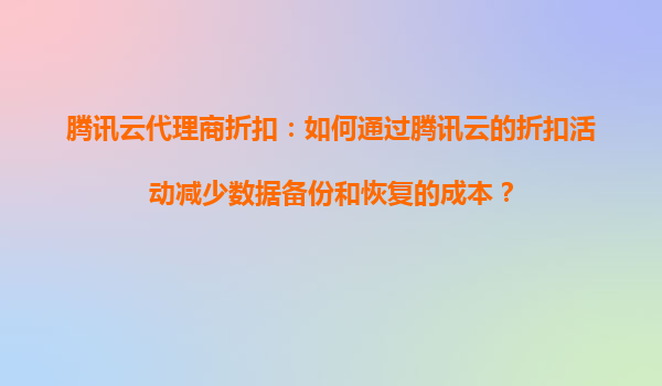 腾讯云代理商折扣:如何通过腾讯云的折扣活动减少数据备份和恢复的成本?