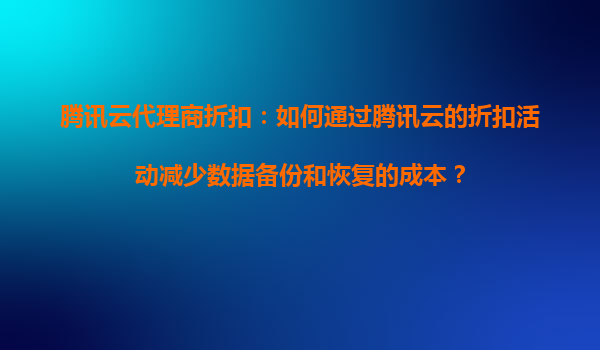 腾讯云代理商折扣:如何通过腾讯云的折扣活动减少数据备份和恢复的成本?