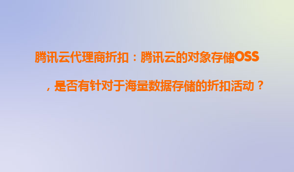 腾讯云代理商折扣:对象存储oss海量数据存储的优惠解析与优势