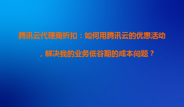 腾讯云代理商折扣:如何用腾讯云优惠活动,解决业务低谷期的成本问题?