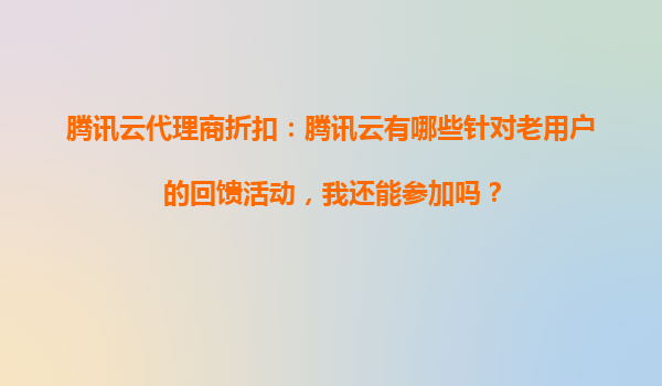 腾讯云代理商折扣:腾讯云老用户回馈活动解析与参与指南