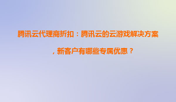 腾讯云代理商折扣:腾讯云云游戏解决方案新客户专属优惠解析