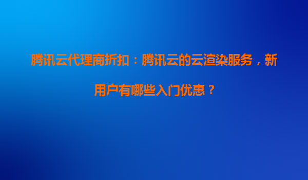 腾讯云代理商折扣:腾讯云的云渲染服务新用户入门优惠全解析