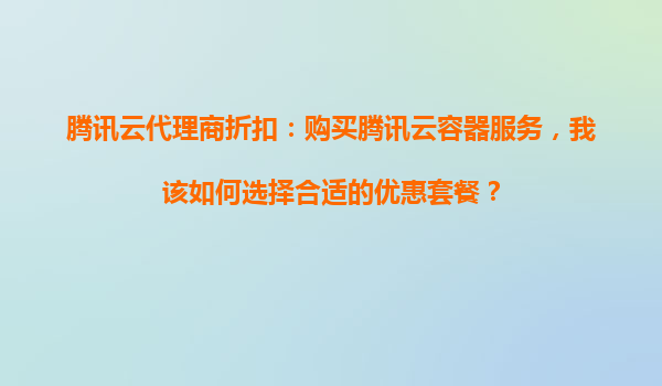 腾讯云代理商折扣:购买腾讯云容器服务,我该如何选择合适的优惠套餐?