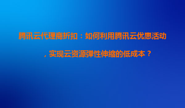 腾讯云代理商折扣:如何利用腾讯云优惠活动,实现云资源弹性伸缩的低成本?
