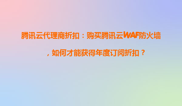腾讯云代理商折扣指南:如何通过代理商获取waf防火墙年度订阅优惠