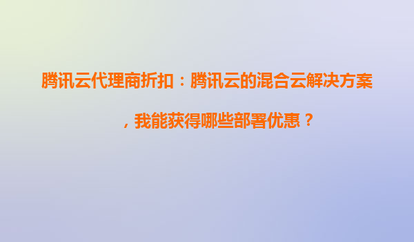 作为腾讯云代理商,我们致力于为客户提供高效、灵活且高性价比的混合云解决方案。通过腾讯云的强大技术支持和丰富的产品矩阵,客户可以在本地数据中心与云平台之间实现无缝集成,享受多重部署优惠。