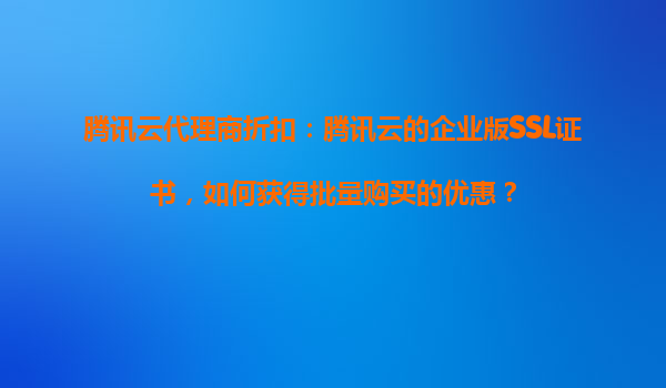 腾讯云代理商折扣:如何批量购买企业版SSL证书并获得最大优惠