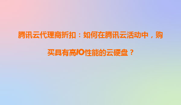腾讯云代理商折扣:如何在腾讯云活动中购买高IO性能云硬盘?