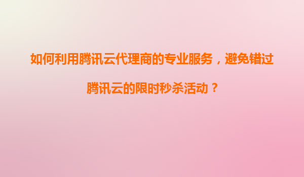 如何利用腾讯云代理商的专业服务,避免错过腾讯云的限时秒杀活动?