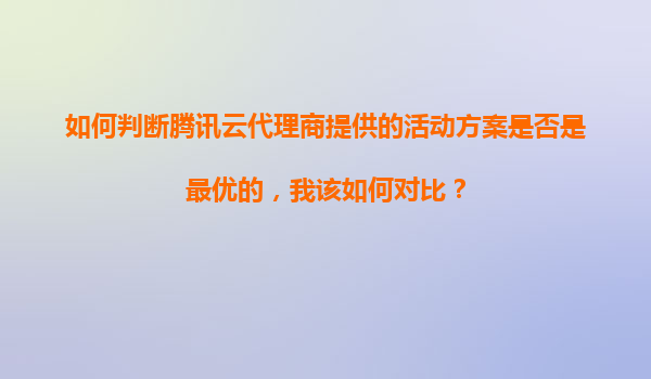 如何判断腾讯云代理商提供的活动方案是否是最优的?全面对比指南