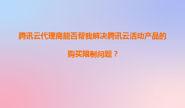 腾讯云代理商能否帮我解决腾讯云活动产品的购买限制问题?