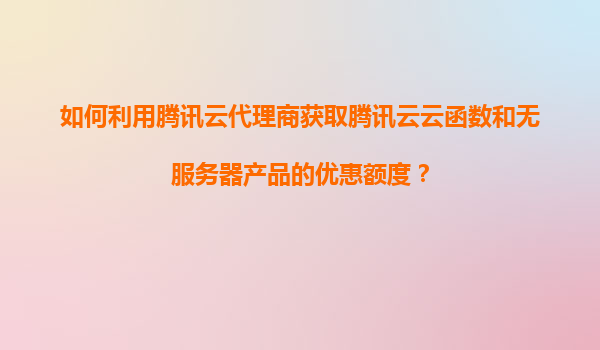 通过腾讯云代理商体系获取云函数等无服务器产品优惠,关键在于: