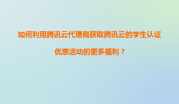 如何利用腾讯云代理商获取腾讯云学生认证优惠活动的更多福利?