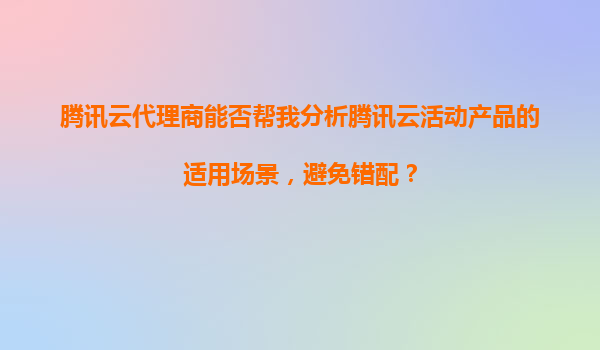 腾讯云代理商如何帮助您精准分析活动产品适用场景,避免错配?