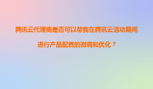 腾讯云代理商在活动期间的产品配置微调与优化服务解析