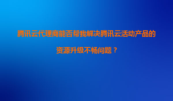腾讯云代理商能否帮我解决腾讯云活动产品的资源升级不畅问题?