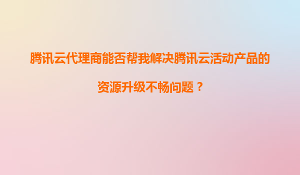 腾讯云代理商能否帮我解决腾讯云活动产品的资源升级不畅问题?