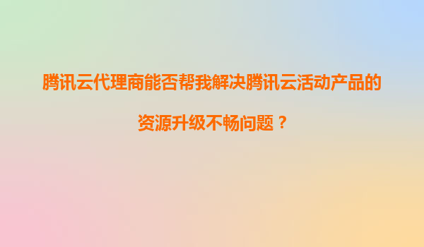 腾讯云代理商能否帮我解决腾讯云活动产品的资源升级不畅问题?