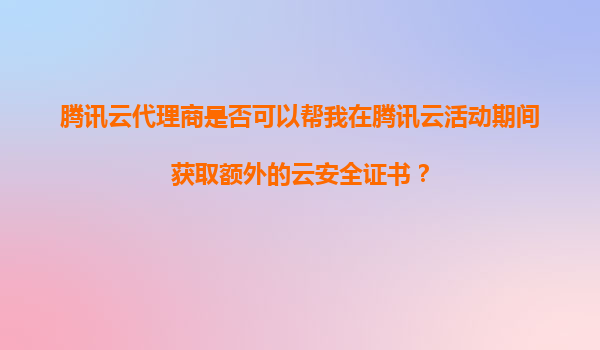 作为国内领先的云计算服务商,腾讯云凭借其强大的技术实力和完善的生态体系,已成为众多企业和个人用户上云的首选。在安全合规方面,腾讯云更是投入重金打造了全方位的安全防护体系。云安全证书作为保障网站和应用安全的重要工具,对于用户来说至关重要。那么,在腾讯云活动期间,通过其代理商是否能够获取额外的云安全证书呢?答案是肯定的。