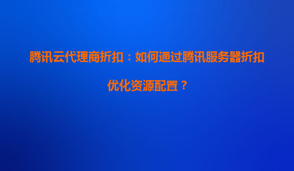 腾讯云代理商折扣:如何通过腾讯服务器折扣优化资源配置?