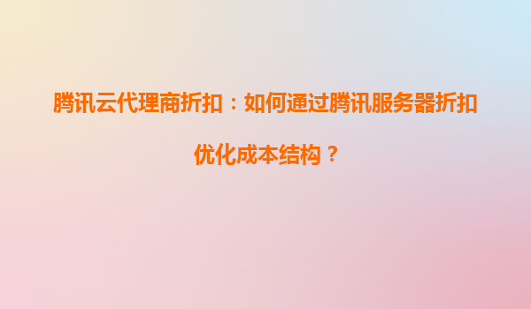 腾讯云代理商折扣:如何通过腾讯服务器折扣优化成本结构?