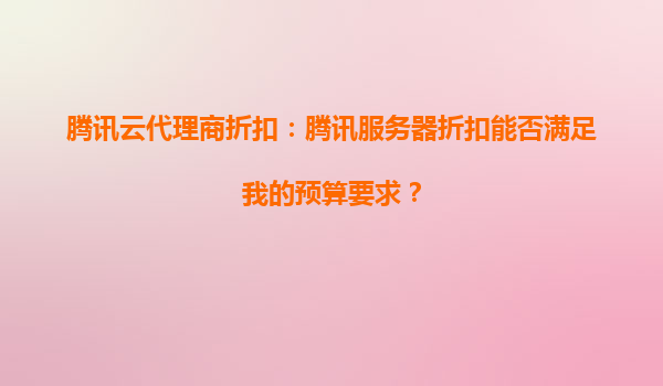 腾讯云代理商折扣:腾讯服务器能否满足您的预算要求?