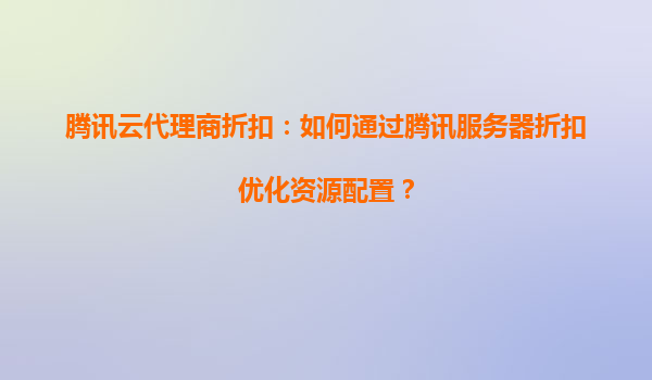 腾讯云代理商折扣:如何通过腾讯服务器折扣优化资源配置?
