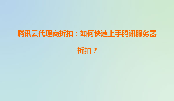 腾讯云代理商折扣:如何快速上手腾讯服务器折扣?