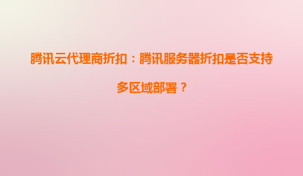 腾讯云代理商折扣体系全面支持多区域部署方案,企业客户通过授权代理商可享受: