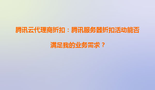 腾讯云代理商折扣:腾讯服务器折扣活动能否满足我的业务需求?
