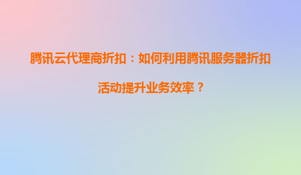 腾讯云代理商折扣:如何利用腾讯服务器折扣活动提升业务效率?