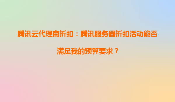 腾讯云代理商折扣与服务器活动:如何满足您的预算要求?