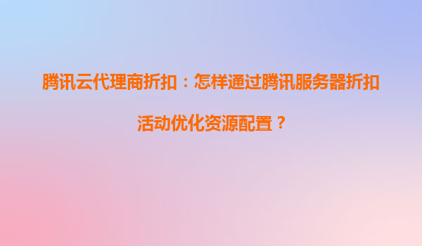 腾讯云代理商折扣:如何通过腾讯服务器折扣活动优化资源配置?