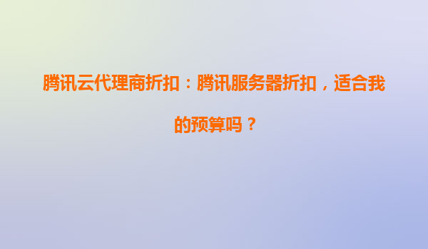 腾讯云代理商折扣:如何用更低预算享受高品质云服务?