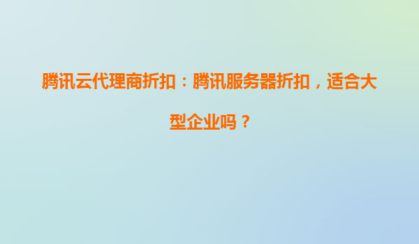 腾讯云代理商折扣:大型企业的智能化云端解决方案