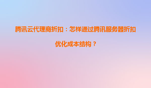 腾讯云代理商折扣:如何通过腾讯服务器优化企业成本结构