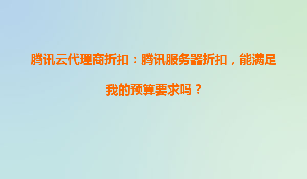 腾讯云代理商折扣:腾讯服务器折扣,能满足我的预算要求吗?