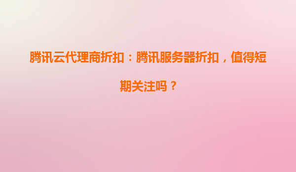 腾讯云代理商折扣:腾讯服务器折扣,值得短期关注吗?